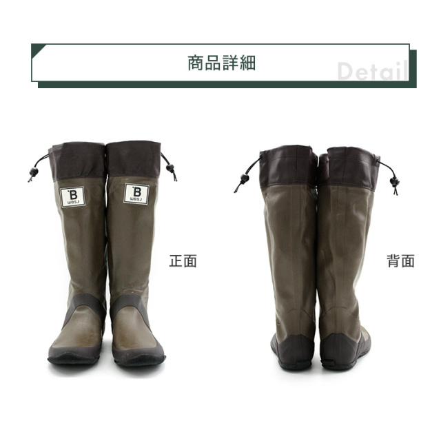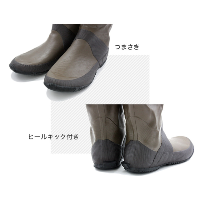 新品の長靴についている白い粉について![]() ゴムの表面に白い粉が付着していることがありますが、品質上は全く問題ありません。 通常は、何度かご使用になる間に自然にとれていきます。気になる場合は、水洗い、またはシリコンオイルを塗るなどをお試しください。 |