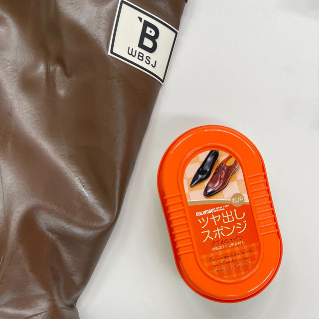 商品到着後、レビューを書いていただいた方に、長靴のお手入れに使えるつや出しスポンジをプレゼント!