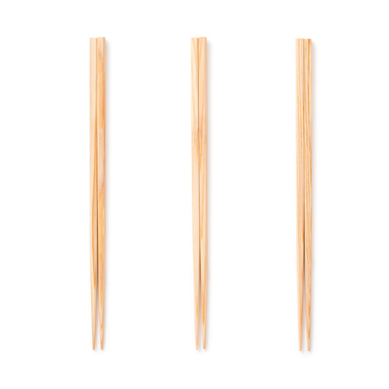 国産杉の無垢材に天然由来の蜜蝋(ミツロウ)を薄く塗り、1ヶ月ほどの耐久性をもたせた「角箸」。ホテル、飲食店、長期の旅行など、環境に配慮しながら衛生的にお箸を使いたい方に。