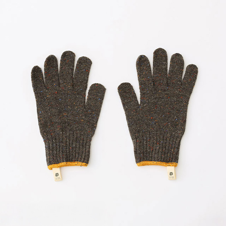 さらにポリウレタンを混ぜることでフィット感と保温性を強化。色とりどりの繊維粒が散りばめられたカラーネップ糸により、選ぶ楽しさと懐かしいアナログ感も味わえる手袋です。